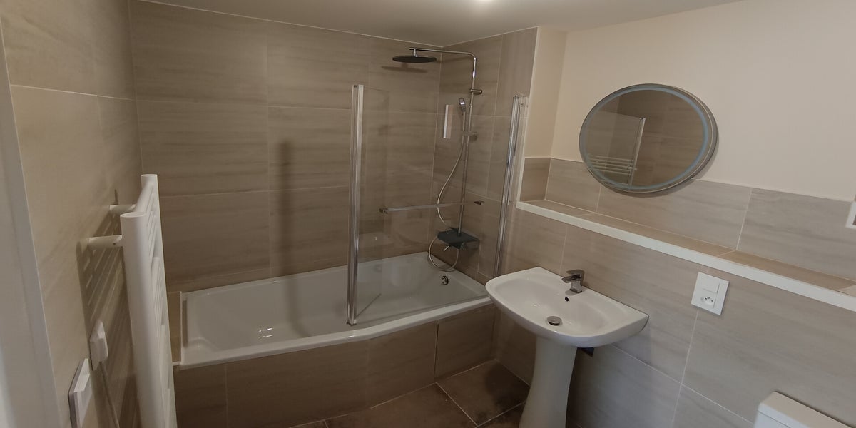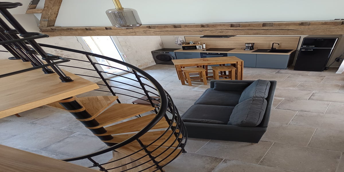 65 m2 - Cuisine , salon , salle à manger ( mange debout) , 1 chambre et salle de bain en rez de chaussée , 1 chambre palière en mezzanine