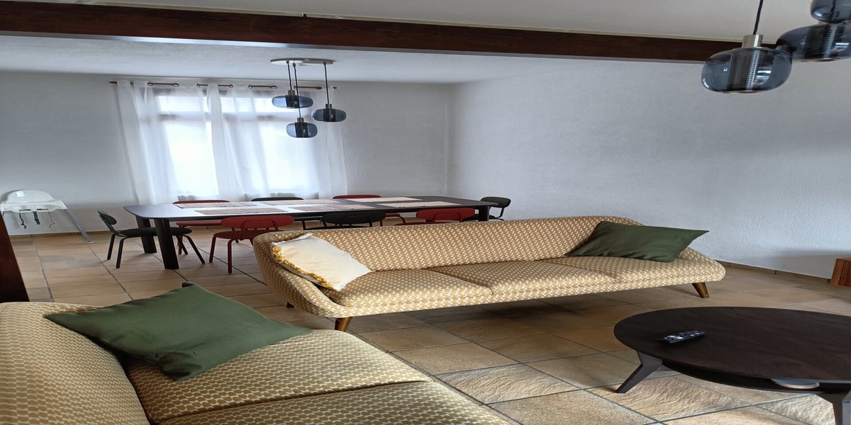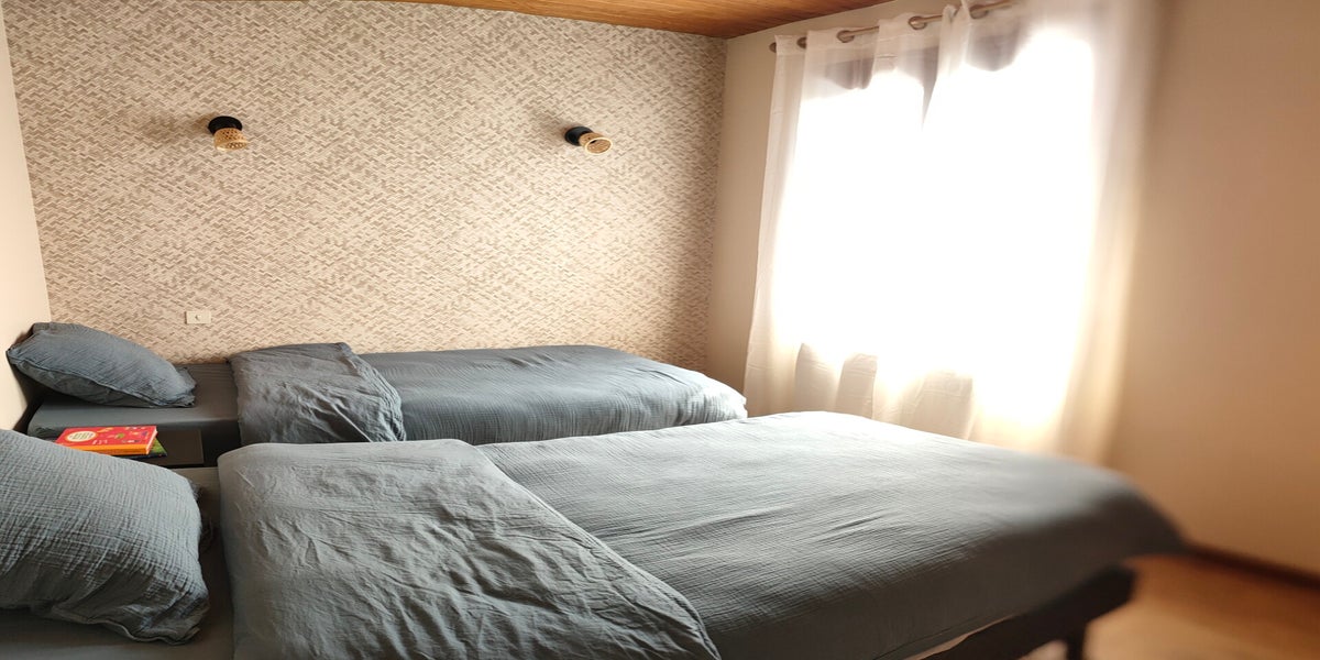 78m2 - Salon , Salle à manger , Cuisine , Salle de bain et WC en rez-de-chaussée , 1 grande chambre ( lit 160cm ) et 1 chambre avec deux lits simple .