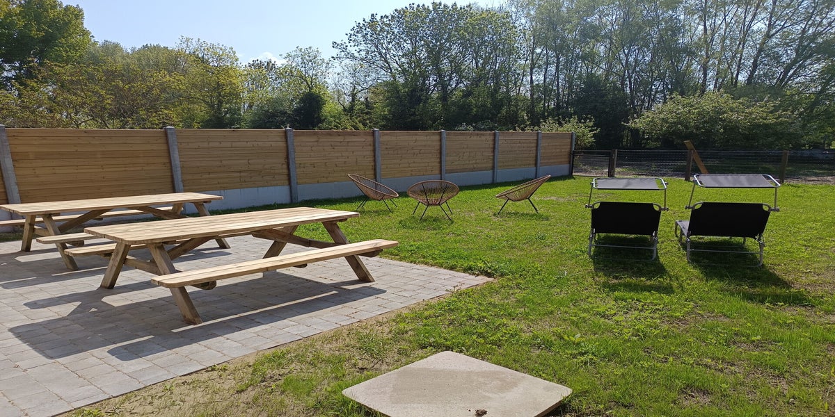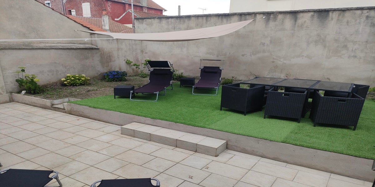 Un jardin clos - barbecue - bain de soleil - machine à laver